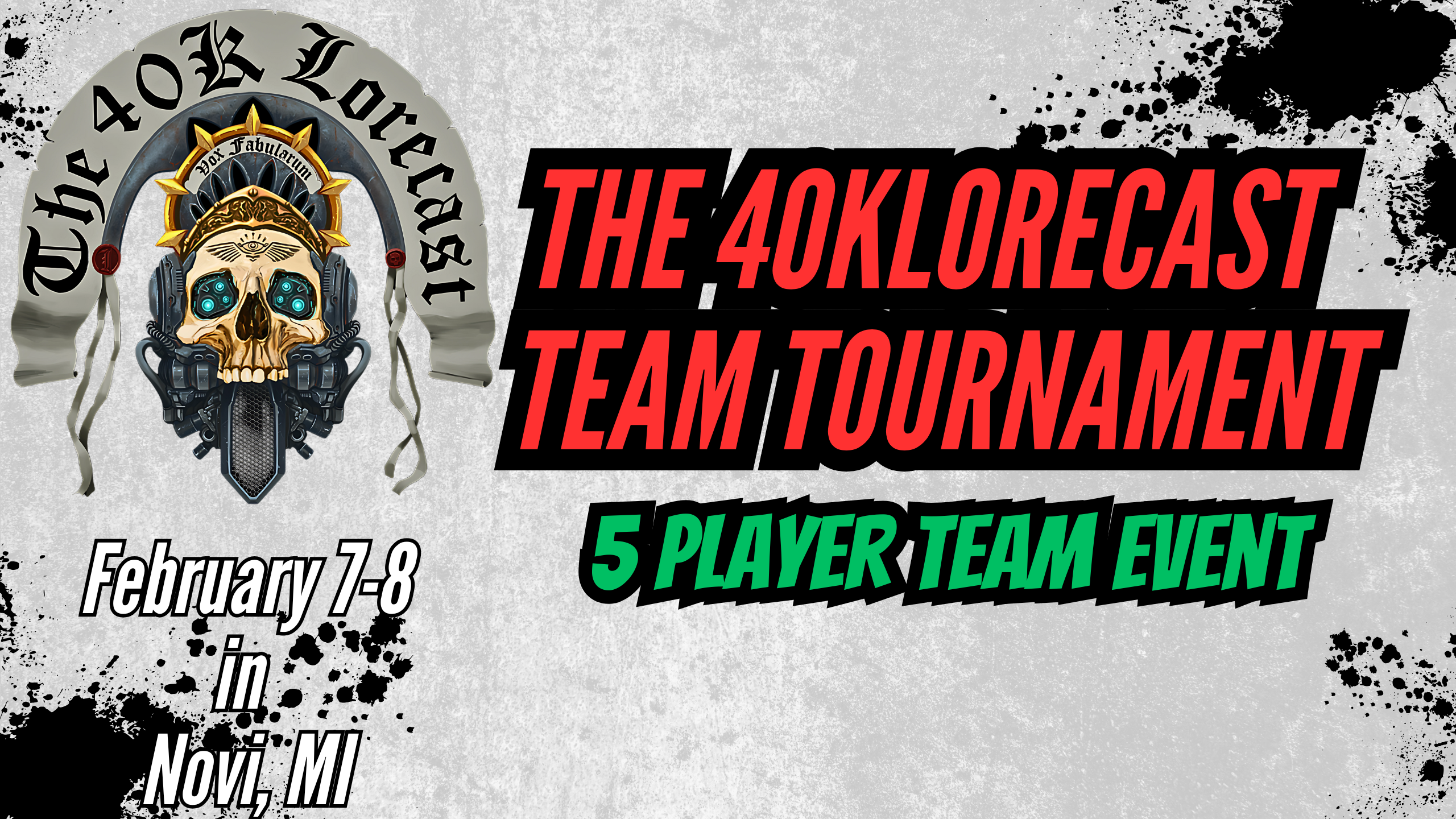This will be a 5 round WTC styled team event 3 rounds on Saturday, and 2 on Sunday. We will be Using Games Workshop style terrain layouts, current Tournament Pack missions.